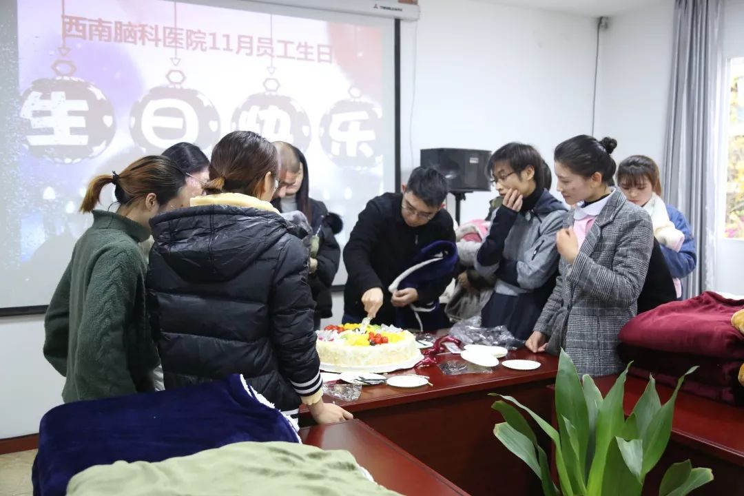 11月28日下午,成都西南脑科医院员工生日会在会议厅举办。十几名11月生日的工作人员欢聚庆生。