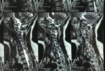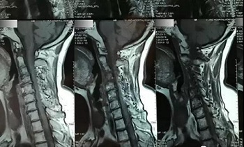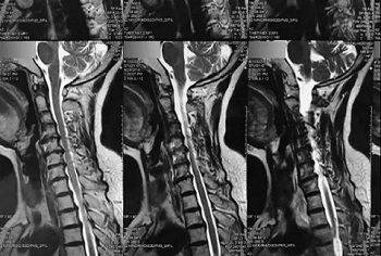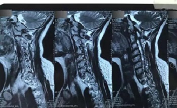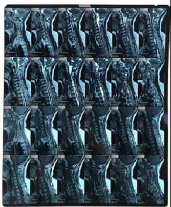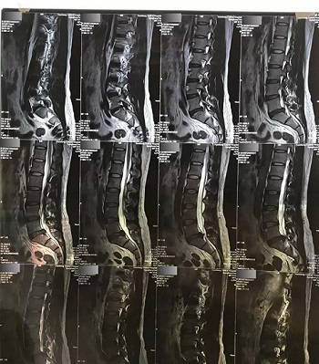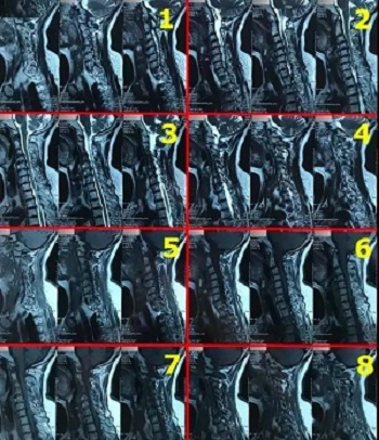 九、翻拍磁共振图像时,因为磁共振片子很大,而且一张片子上有很多图像(如下图),所以,单纯的拍一张片子,因为手机拍摄,像素以及翻拍质量不好,且放大后图像会发虚,细节看不清楚,所以,基本上是没用的,对于医生阅片来说,质量太差,不能获取图片上的有效信息。