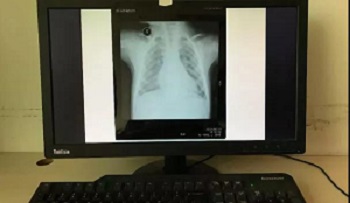 把片子直接贴在窗户玻璃上拍,窗户外面的风景透过片子拍入了照片上,图片的下半部分,可以隐约看到窗户外面的建筑,影响医生阅片,不能获取有价值的磁共振信息。