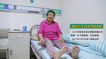 7月8日上午做的手术。大概30多分钟她就出手术室了。出来的时候,右边手脚已经不抖了。第二天,她可以下床活动,右手比以前灵活,可以拿稳东西。她的脚以前是僵的,还会抽筋、痛,半夜我都起来给她搓脚,现在基本上可以睡到天亮。手脚不抖不僵,她走路、做事轻松,我也轻松。