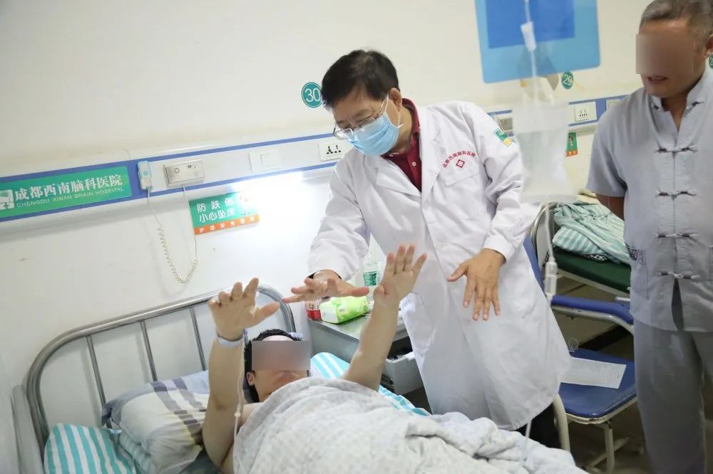 黄光教授与我院一起查房,开展脑科MDT(多学科)联合会诊。对病情进行评估,判断患者是否适合外科微创治疗以及外科治治疗果评估,对症状较轻的患者提供针对性的用药指导,康复医师提供脑科疾病患者的日常行为康复指导。