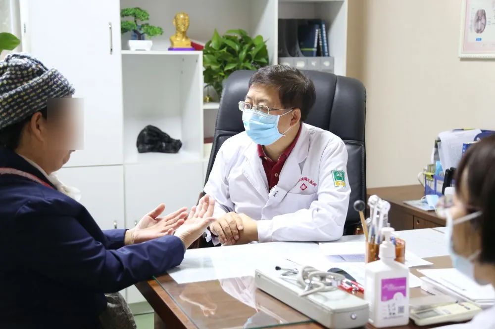 尹丰教授做完手术,还没来得及摘下手术帽,看到诊室外一大早就来院排队等候着的患者,进到诊室详细了解记录了每位患者的情况,并为他们制定了适合他们的治疗方案。