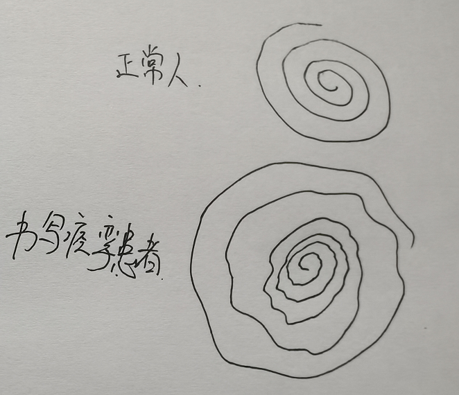 这是一位书写痉挛患者与正常人画的螺旋圆圈对比,这位患者困惑了四五年,辗转多家医院未给明确诊断。直到今天听说北京医生尹丰教授来我院坐诊,慕名前来,总算是得到了一个明确诊断结果。只有专业的脑神经外科才能慧眼识疾!