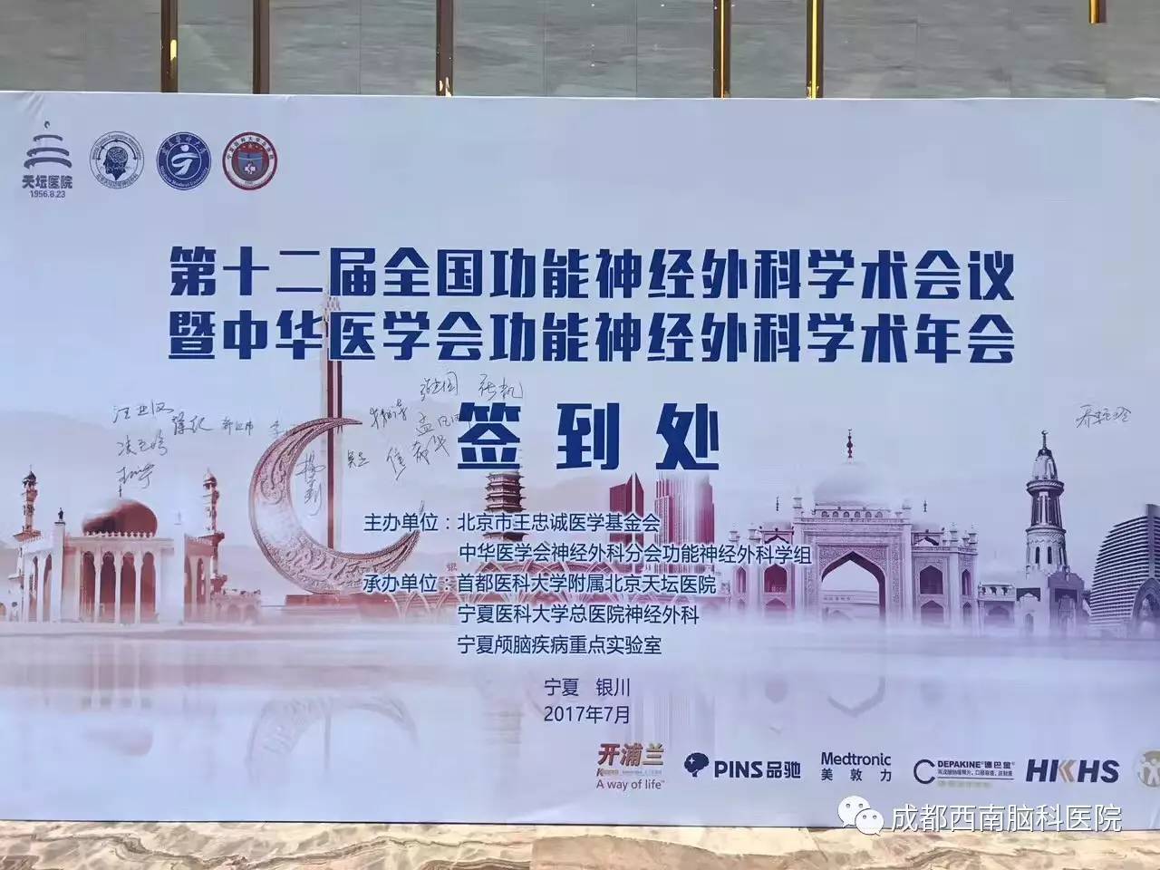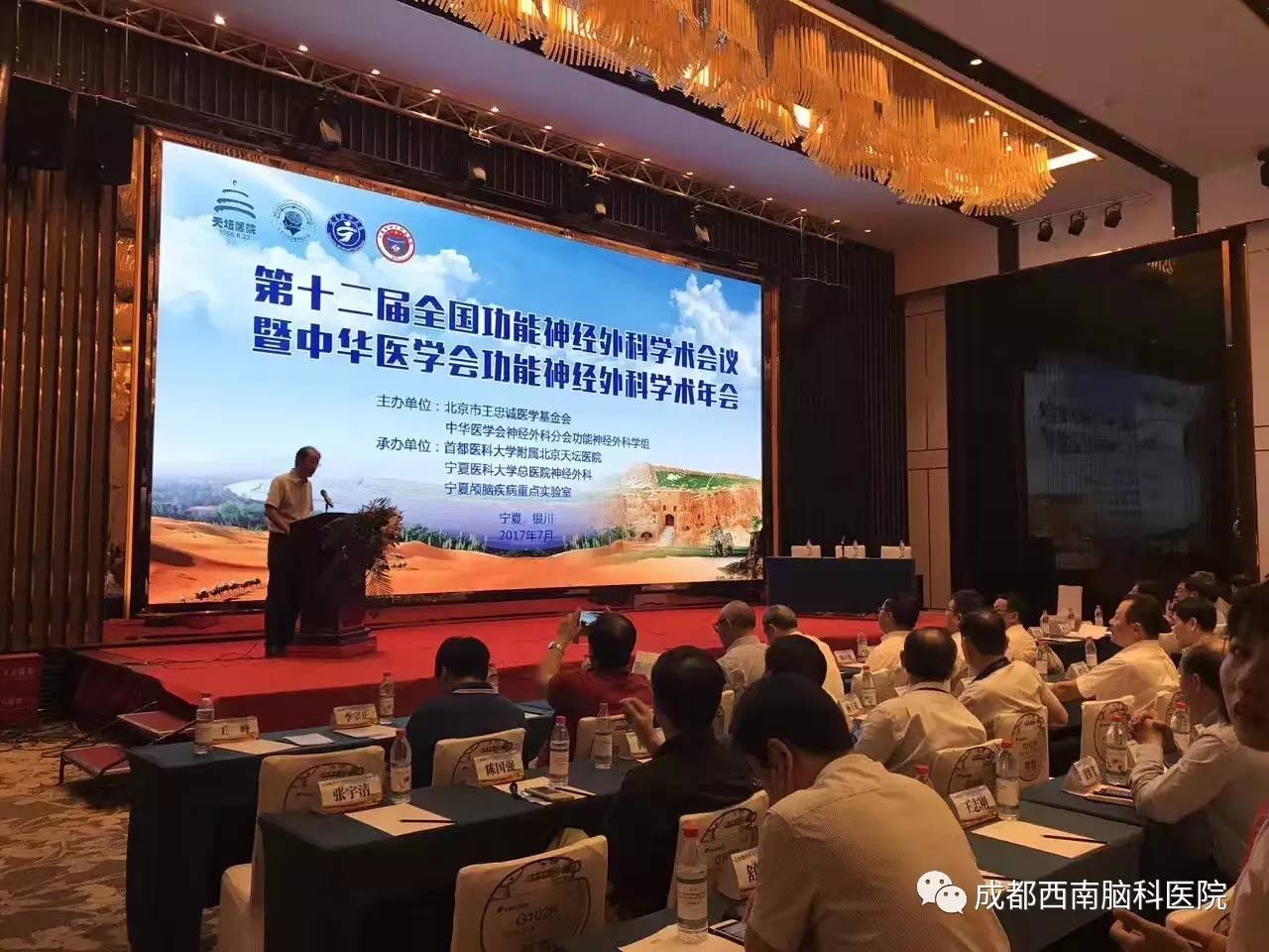 第十二届功能神经外科学术会议暨中华医学会功能神经外科年会于7月30日(昨天)在宁夏银川圆满落幕。本次大会由中华医学会神经外科学分会功能神经外科学组、王忠诚医学基金会主办,宁夏医科大学总医院神经外科、宁夏颅脑疾病重点实验室承办。成都西南脑科医院特需,解放军(北京)海军总医院神经外科尹丰教授也在本次邀请嘉宾的名单中。