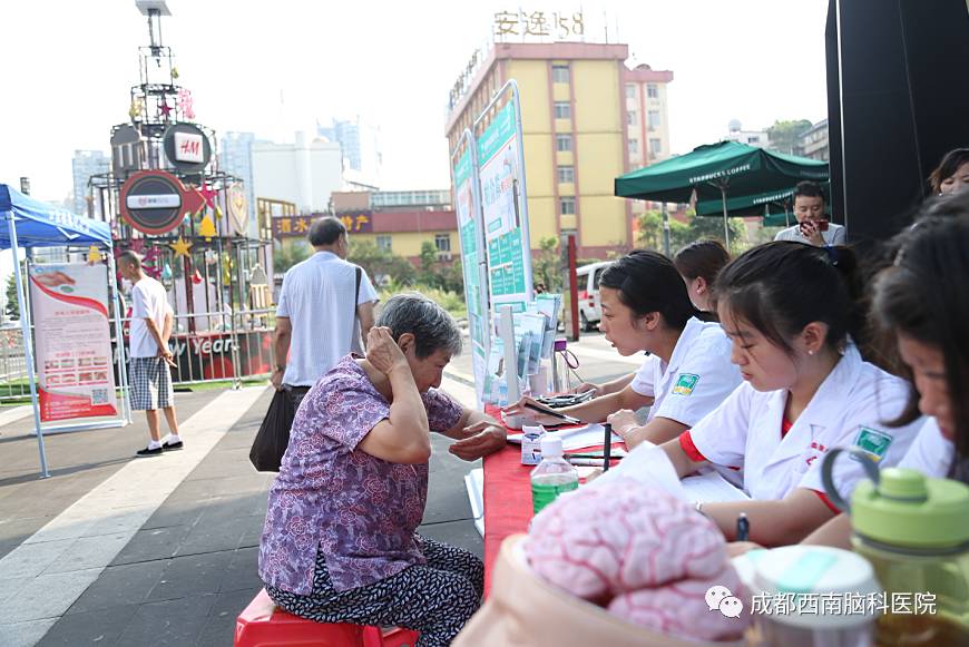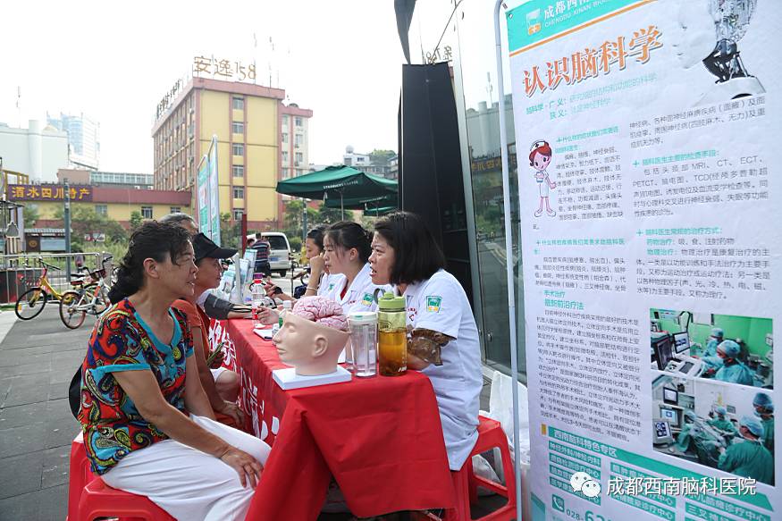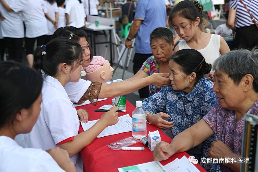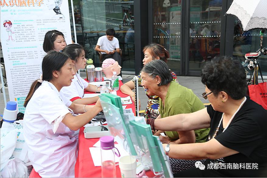 其实成都西南脑科医院的医护人员已经先后去到多个社区进行过公益义诊活动了,这次义诊主要目的是在“走基层”文化惠民的同时,为社区的老人们进行了老年病的知识普及和义诊,提高他们的健康意识,为大家传播老年痴呆、帕金森、脑萎缩等老年病的相关知识。让更多的老年人加强脑部疾病的预防知识,意识到这种疾病的严重性。