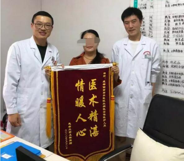 10月11日上午,10余年混合型颈椎病患者王女士专程来到成都西南脑科医院,将一面写着“医术精湛,情暖人心”的锦旗送到该院三病区程俊主任以及住院医生韩伟科的手中。患者王女士对治疗及服务特别满意,特送锦旗感谢三病区医护人员,为他们点赞。